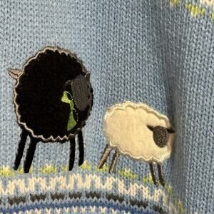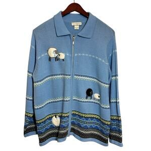 Vintage Allison Daley Fair Isle Black Sheep Cardigan Sweater Full Zip Large