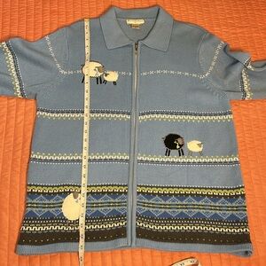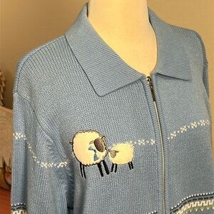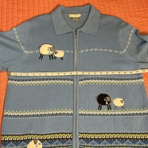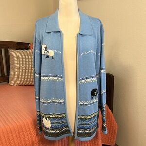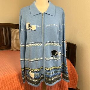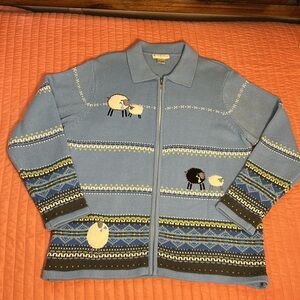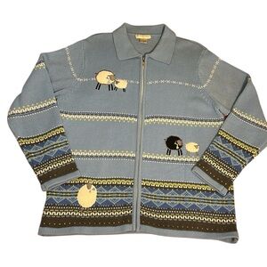 EUC Vintage Allison Daley Fair Isle Black Sheep Knit Cardigan Sweater Full Zip sz 1X