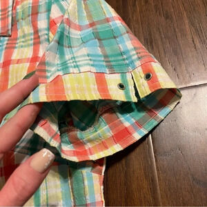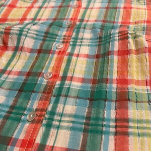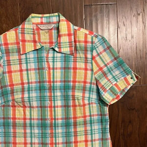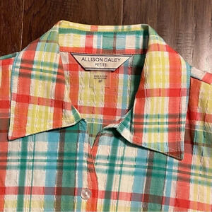 Vintage Allison Daley Lightweight Short Sleeve Blouse Bright Plaid