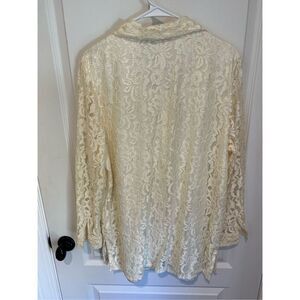 Excellent condition. Really nice lace top, beautiful lace button down top. Size L. Approx measurements across chest 22” length 29”