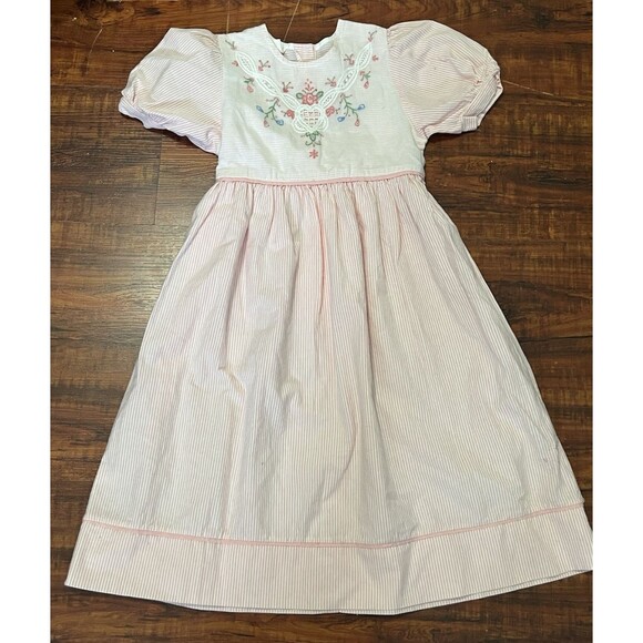 Vintage Allison Rose Pink Striped Dress - Embroidered, Cutout Lace, 6X
