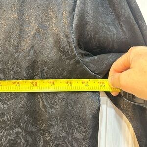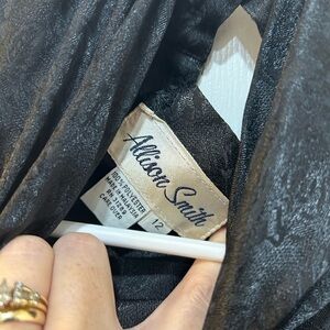Vintage Allison Smith Black Sateen Blouse Textured Rose Patterned Pleated Sz 12