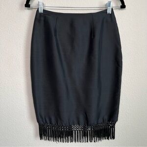 Vintage Allison Taylor 100% Silk Fringe Straight Women's Skirt Size 2