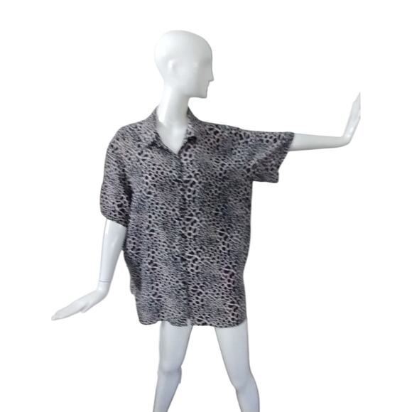 Vintage Allison Taylor Women's size 1X 100% Silk Button Down Animal Print Top Summer Cool Breathable Light Weight Comfortable Loose Flowy Tunic Boho
