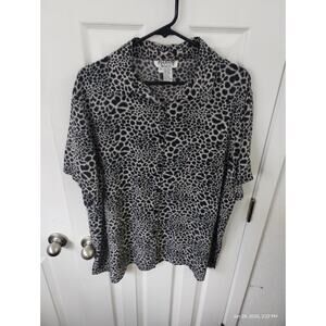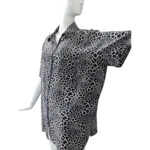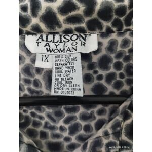 Vintage Allison Taylor Women's size 1X 100% Silk Button Down Animal Print Top