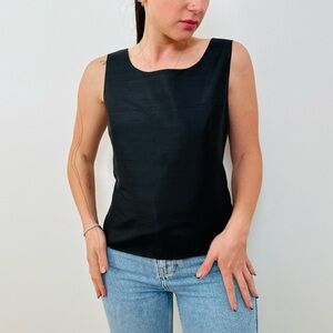 This black tank top features a sleek and modern design, perfect for adding a touch of sophistication to your wardrobe. Its lightweight fabric ensures comfort and style, making it an ideal choice for both casual and dressy occasions.