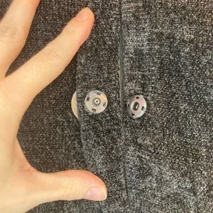 - Faux buttons cover snap closures -- there is a fourth snap without a faux button. You wouldn't know it was missing from the outside of the jacket -- last image shows close up of where the button should be