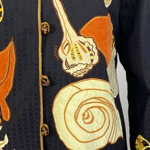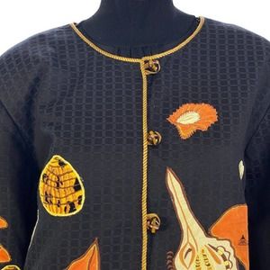 Vintage Allure Black Orange Embroidered Autumn Fall Leaves Blazer XL