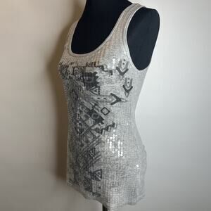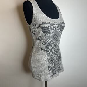 Vintage Almost Famous Sequin Tank Top Gray Y2K Womens XL Aztec Boho Ribbed Party