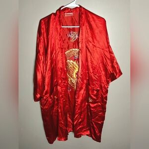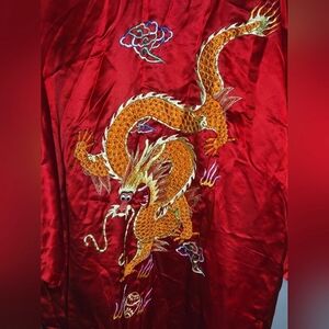 Vintage Aloha Hawaii 100% Silk Hand Embroidered Chinese Dragon Robe Kimono