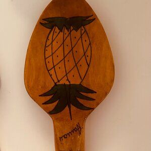 VINTAGE 12” HAWAIIAN TIKI WOODEN FORK & SPOON FLOWER PINEAPPLE ALOHA HAWAII