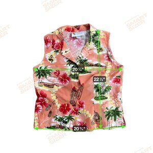 Vintage Alohawears Hawaiian Sleeveless Size L Hula Dancer Hibiscus Hawaii Scenic
