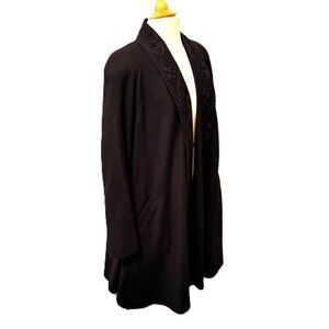 Vintage Alorna Coat Womens XL / 1X Black Wool Embroidered Open Front USA 60s