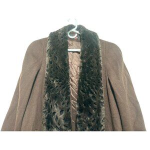 Vintage Alorna Faux Fur Trim Wool Penny Lane Coat Women XL Brown Retro Old Money