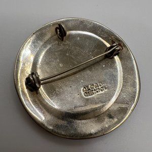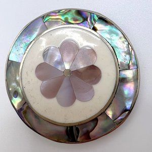 Vintage Alpaca Flower Mother of Pearl & Abalone Necklace Pendant or Brooch