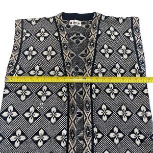 Vintage Alpaca Line Sweater Vest Open Front Black Off White Womens Peru.