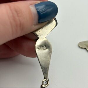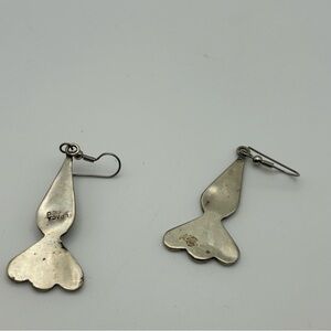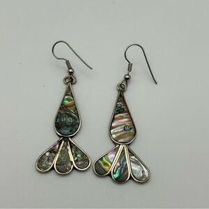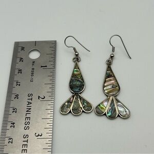 Vintage Alpaca Mexico Genuine Abalone Shell Carrot Design Dangle Pierced Earring