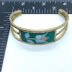 Vintage Alpaca Mexico Inlaid Mother-of-Pearl Floral Cuff Bracelet. Bracelet is vintage and shows some wear, inlay in very good condition. Marked Alpaca, Mexico on back side. ✔️✔️🌀✔️✔️