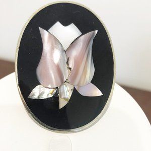 -Vintage Alpaca Mexico Oversized Oval Flower Pendant and Brooch Pin.