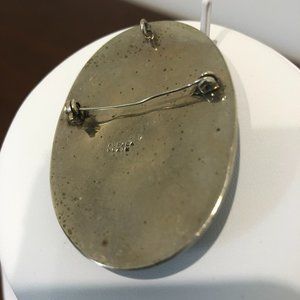 Vintage Alpaca Mexico Oversized Oval Flower Pendant and Brooch Pin.