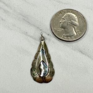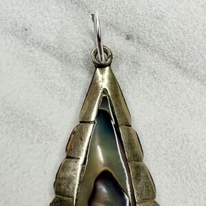 Vintage Alpaca Mexico Silver Tone Abalone Shell Inlay Upcycled Pendant