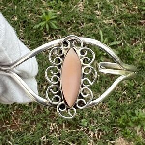 Vintage Alpaca Mexico Women's Cuff Bracelet Silver Tone Signed Item Length 5.5"