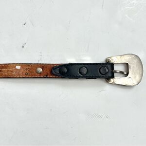 Vintage Alpaca Silver Hand Beaded Leather Belt Mexico - Small 28”