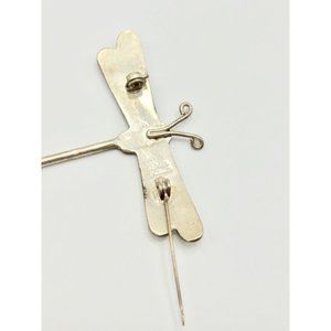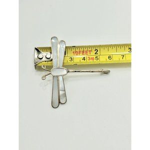 Vintage Alpaca Silver Mexico Dragonfly Insect Pin Brooch Mother of Pearl Inlay