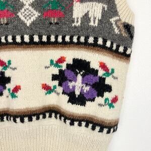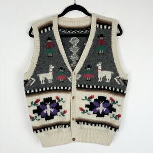 Vintage Alpaca Sweater Vest Woman’s Peruvian Wearable Art Boho Knit Button