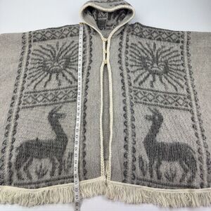 Vintage Alpaca Wool Poncho Cape Hooded Llama Fringe Peru Handmade Boho OS
