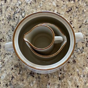 Vintage Alpine Mountain Stoneware Set of 3 Cream Casserole Dish Pot Bowl