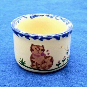 Vintage Alpine Pottery Roseville Cat Mini Butter Crock Votive Holder Trinket USA