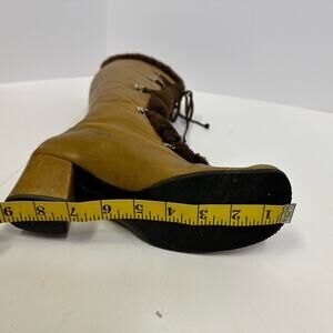 Step into retro style and ultimate warmth with these vintage Alpine shearling-lined winter boots, made in Spain. These women’s lace-up leather boots feature a soft tan leather upper with dark brown shearling trim and lining, ensuring comfort and warmth during colder months. The quilted leather design adds a unique touch, while the lace-up front with durable metal eyelets allows for an adjustable fit.