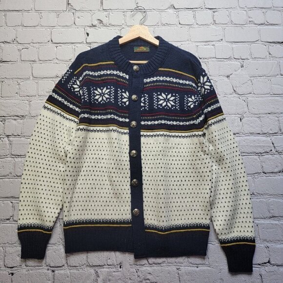 Vintage Alps Knitmeister Nordic Winter Ski Cardigan Sweater Size XL