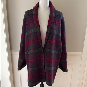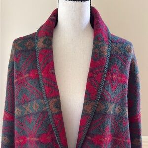 Vintage Alps Wool Aztec Long Blanket Jacket Drop Shoulder Cardigan Women's M