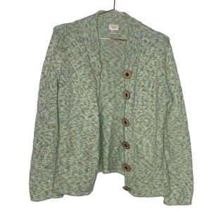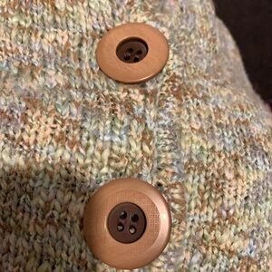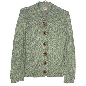 Wool Blend Button Up Sweater With Oversized Wooden Buttons. Excellent used condition. Size M. Armpit To Armpit 21 Inches. Shoulder To Hem 25 Inches.