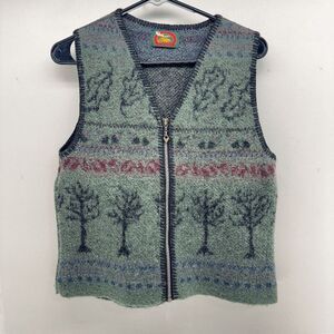 Vintage Alps 100% Wool Womens Small Vest Trees Leaves Nature Scene V Neck Artsy