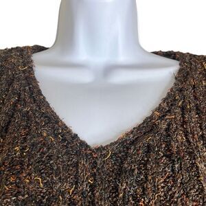 Vintage Alps Brown Marled V Neck Pullover Sweater Cableknit Long Sleeves Medium