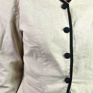 Vintage Althuser Linen Blend Blazer Jacket Beige Crop Tailored Shoulder Pads 10