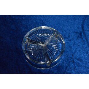 Vintage Aluminum Condiment Server With Divded Clear Glass Insert Leaves Dining