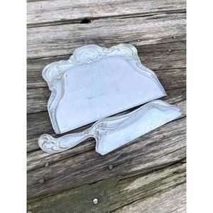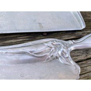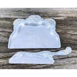 Vintage Aluminum Crumb Tray with Scraper Ornate Nouveau Floral