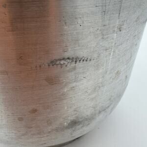 There is a dent near the bottom and dents on both sides where the handle hits when in the down position.
