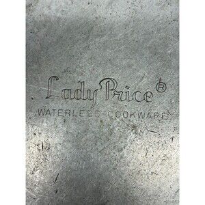 Vintage Aluminum Lady Price Waterless Cookware 2Lt Cooking Pan With Lid.In very good used condition-no deep scratches,no broken or missing parts.It needs a little cleaning and the handle have some crack by the pan base from heat.Please see all pictures for details.