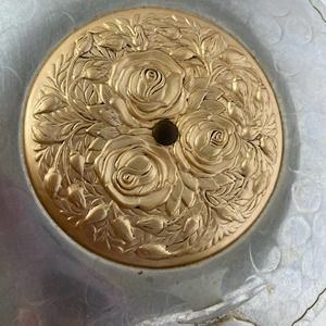Vintage Aluminum Pan Silent Butler Crumb Catcher Gold Roses Design