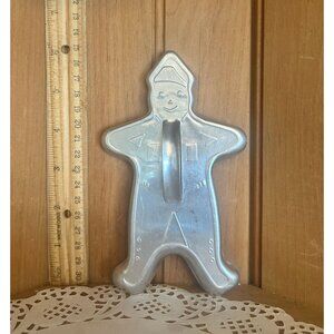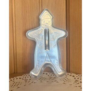 Designed for efficient and precise cookie cutting, this vintage aluminum gingerbread man cutter features a sturdy handle for easy use.