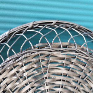 Vintage Aluminum Woven Metal Round Basket, Silver tone, 10 in. diameter