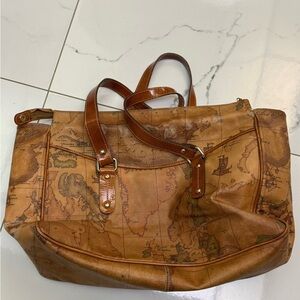 Vintage Alviero Martini Brown Map Print Shoulder Bag