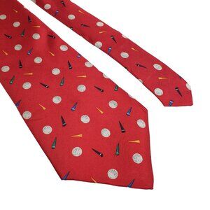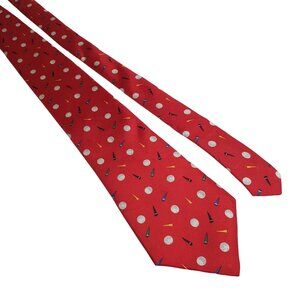 Vintage Alynn Necktie Red Golf Balls Tees Pattern 100 Silk Men Neckwear Dad Gift