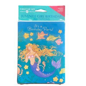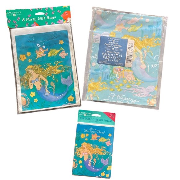 Vintage Am. Greetings Girl Mermaid Birthday Party Set Invitations Gift Wrap Bags
