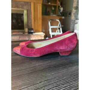 Vintage Amalfi Red Suede and Exotic Leather Toe Capped kitten Heels Sz. 8.5AA